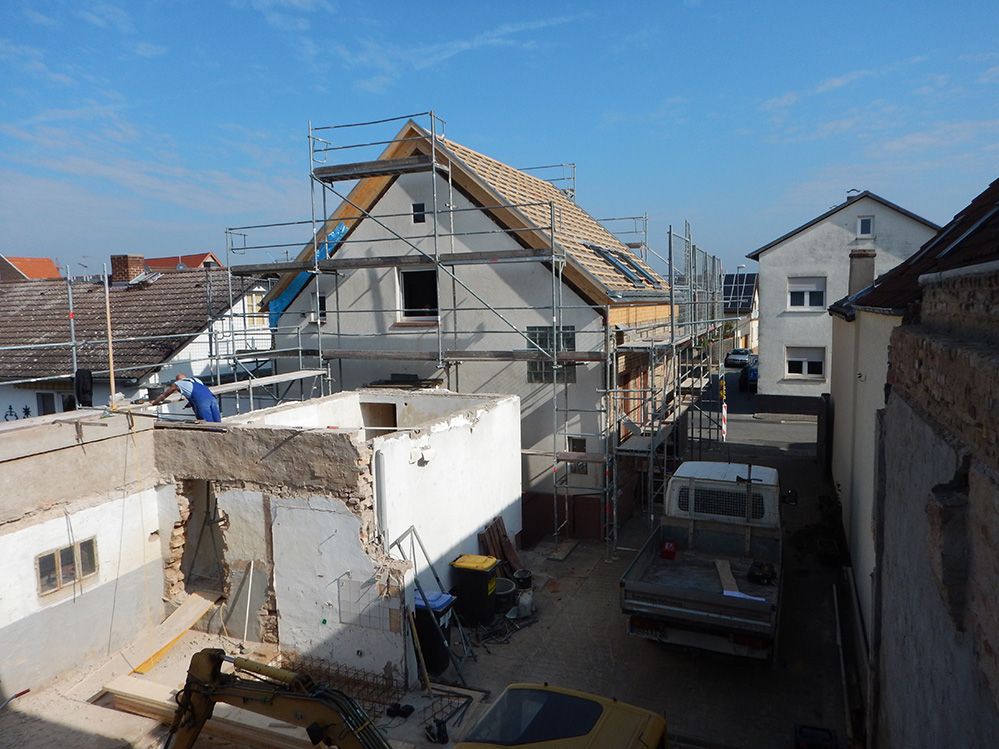 Die Hofreite von 1904 wird zu einem großzügigen Einfamilienhaus umgebaut. Das Haupthaus, in der Rohbaustruktur weitestgehend erhalten, wird durch Nutzungserweiterungen im Zwischenbau und im Erdgeschoss des früheren Scheunenbaus ergänzt. Durch den Abbruch des großen Scheunendaches wird die Belichtung des Ensembles wesentlich verändert. Es entsteht ein Innenhof, der vom Zwischenbau und dem reduzierten Scheunenbau winkelförmig umschlossen wird. Durch die energetische Sanierung entsteht ein KfW 70 Haus. Bauzeit: 09/14 bis 03/15