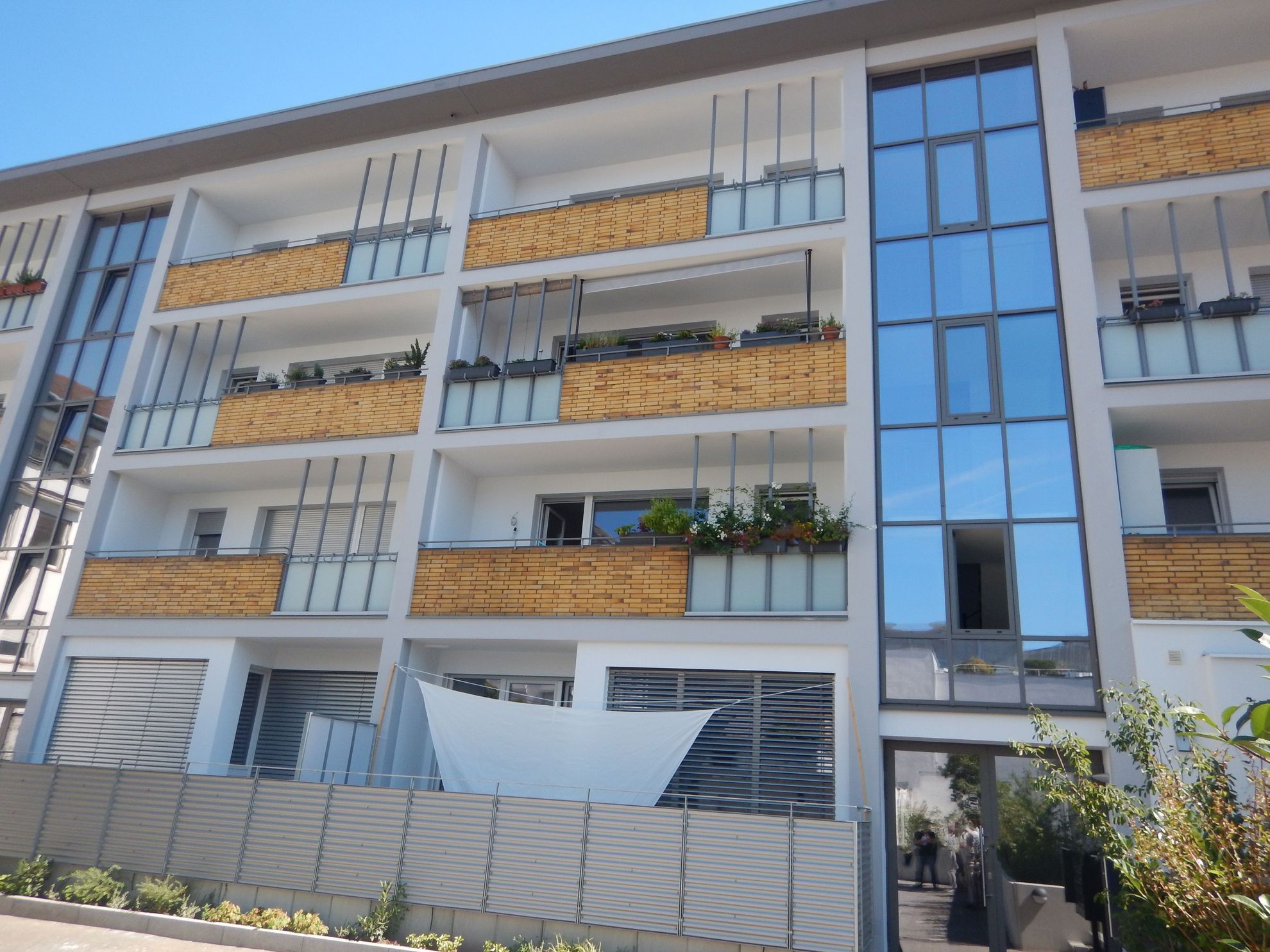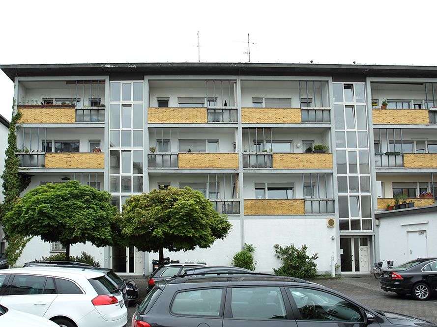In dem Zwölf-Familien-Haus in Darmstadt werden im Zuge einer energetischen Sanierung elf weitere Wohneinheiten geschaffen. Das Gebäude aus den 50er Jahren besticht durch die gut proportionierte Fassade zum Innenhof hin. Diese Fassade wird so behutsam behandelt, dass das Beton-Gerüst und die Balkon-Brüstungen unverändert den Charakter des 50er Jahre Gebäudes unterstreichen. Zur Straßenseite hin wird ein nachträglich angebrachter Schaufenster-Vorbau als Erweiterungsfläche für die im EG entstehenden Wohneinheiten genutzt. Die neu gestaltete Putz-Fassade zitiert 50er Jahre Elemente mit zeitgemäßer Veränderung. Die Baumaßnahme wird von März bis November 2017 durchgeführt.