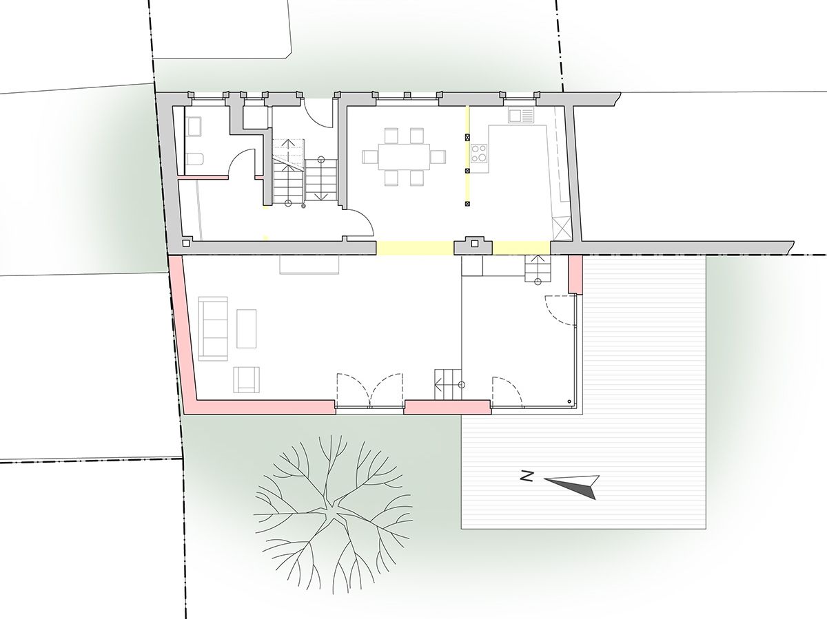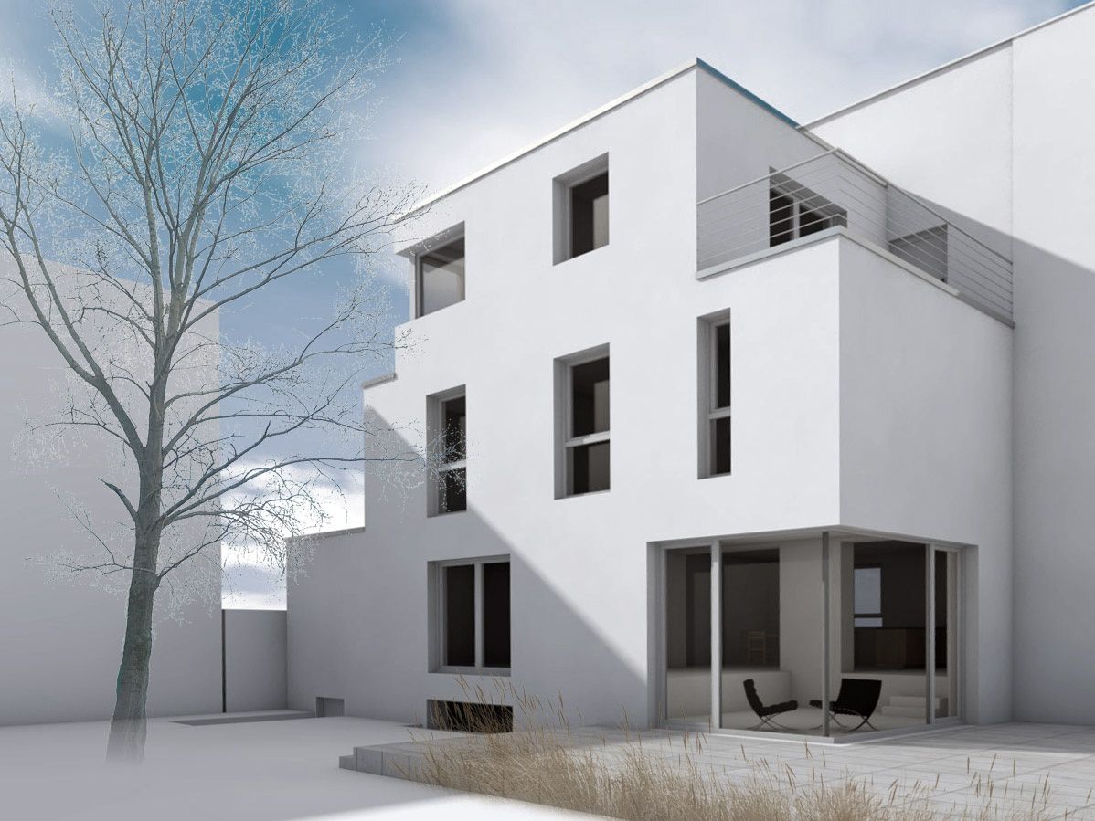 Ein schmales Gebäude von 1910, dass auf der einen Seite in ein Altbau-Ensemble eingebunden ist, wird durch einen Anbau auf dem Gartengrundstück erweitert. Die Herausforderung bei der Innenraum-Planung ist, die beiden völlig verschiedenen Gebäudeteile stilistisch in ein Ganzes zu binden. Das Bauvorhaben befindet sich im Planungsprozess und soll 2018 durchgeführt werden.