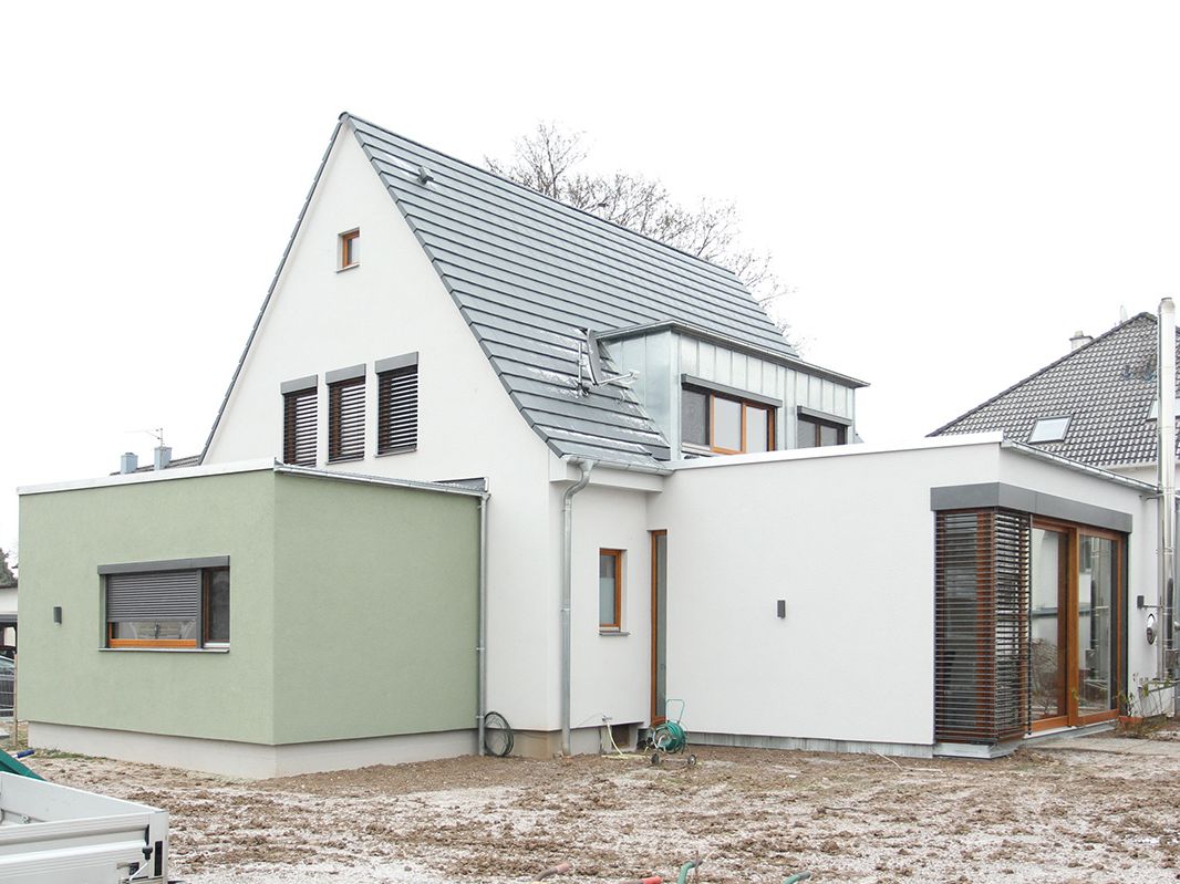 Das EFH von 1960 wird durch einen Dachausbau und zwei Anbauten im Erdgeschoss erweitert. Es wird eine räumliche Großzügigkeit geschaffen, obwohl die Grundrissstruktur des Altbaus weitestgehend erhalten bleibt. Durch die energetische Sanierung entsteht ein KfW100-Haus. Die Baumaßnahme wird von Mai bis August 2018 durchgeführt.