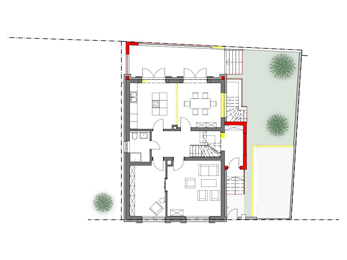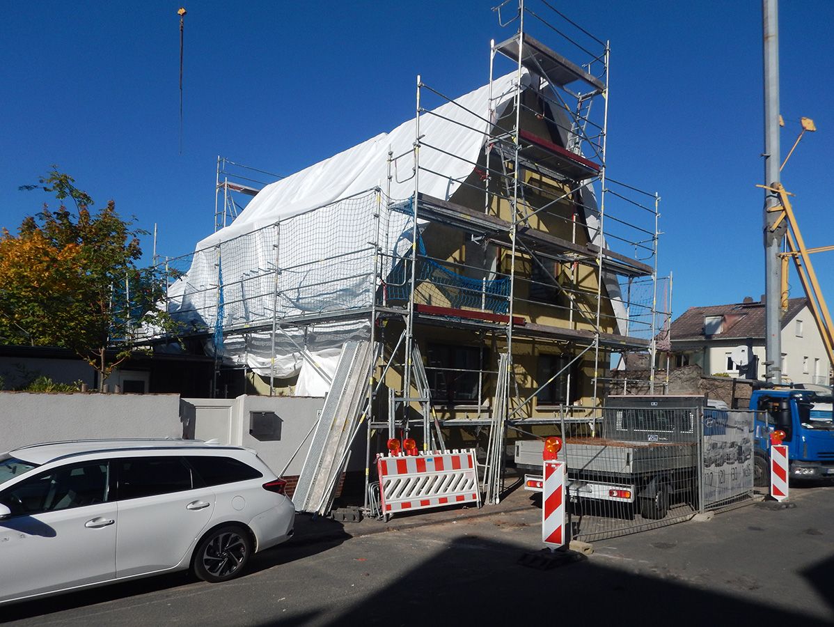 Das Einfamilienhaus von 1960 wird durch eine Aufstockung erweitert. Im Kellergeschoss entsteht eine Einliegerwohnung und an der Westseite wird eine Balkonanlage angebaut. Das Haus erfährt eine grundsätzliche Innenrenovierung. Bei der energetischen Sanierung entsteht ein KfW-70 Effizienzhaus. Die Durchführung ist in der zweiten Hälfte 2019 bis Anfang 2020 geplant.