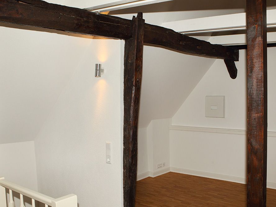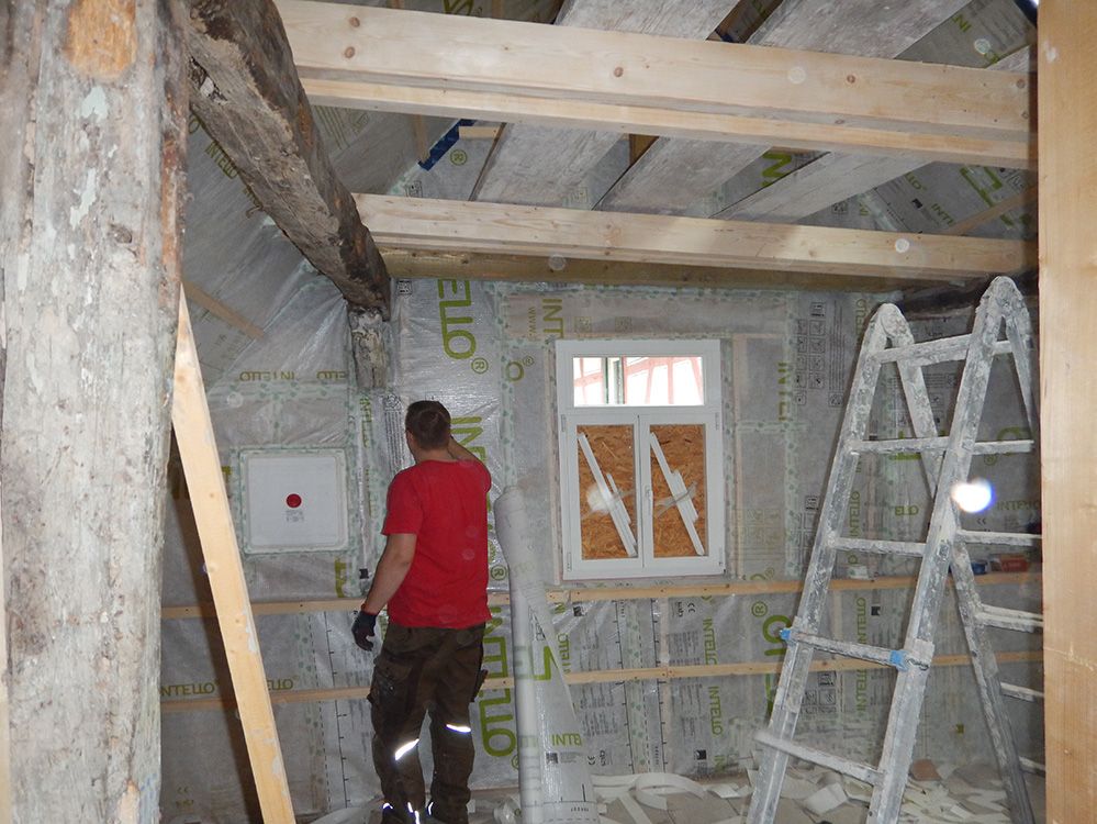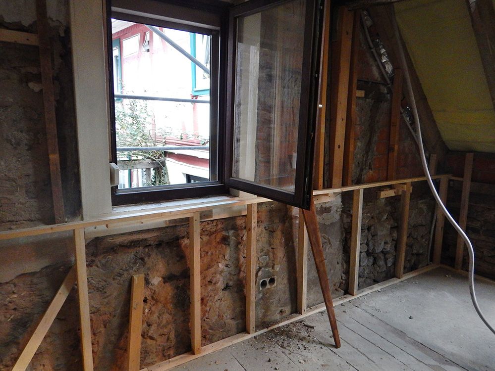 Das denkmalgeschützte Fachwerkhaus aus dem 18. Jh. wurde im Rahmen der Gesamtsanierung zum Effizienzhaus KfW-60 verändert. Eine Aufdach-Dämmung unter Verwendung der intakten Bestandsziegel, neue Fenster, eine Gasbrennwertanlage mit Flächenheizkörpern und eine diffusionsoffene Innendämmung erreichen den beantragten Effizienzstandard.