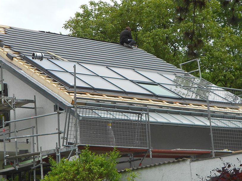 Im Rahmen der Altbau-Sanierung wurde das Gebäude energetisch saniert. Außendachdämmung, Aufdachdämmung, neue Fenster-Elemente mit 3-fach-Verglasung, Solaranlage für Warm-Wasser, Heizungsunterstützung und Schwimmbadheizung ermöglichten ein Effizienzhaus KfW 100. Für die energetische Sanierung wurden KfW-Fördermittel eingesetzt.