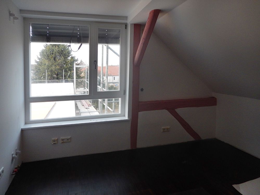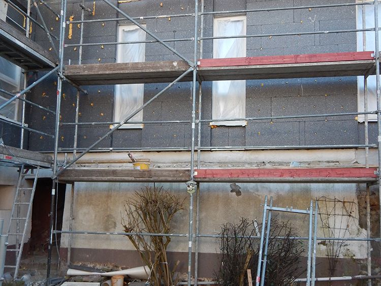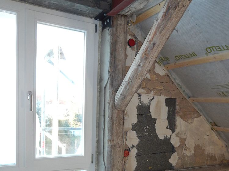 Im Rahmen des Umbaus wurde das Sanierungsobjekt durch eine Aufdachdämmung, eine Fassadendämmung, neue Fenster und den Einbau einer Pelletsheizung auf den Energiestandard KfW-70 gebracht und mit KfW-Mitteln gefördert.