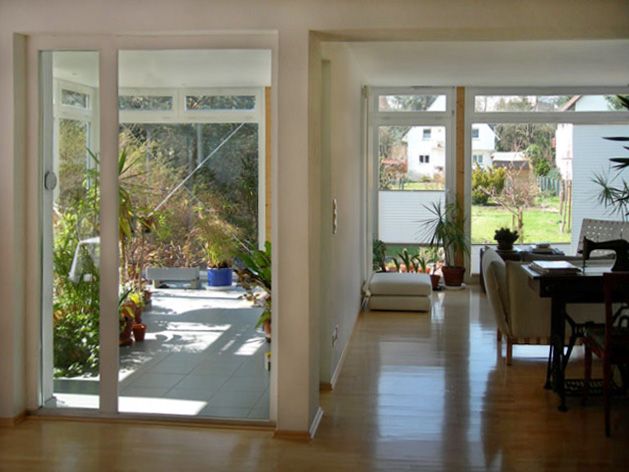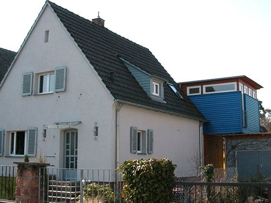 Das Haus aus den 1950er Jahren auf großem Grundstück konnte durch einen quergestellten Anbau erweitert werden.