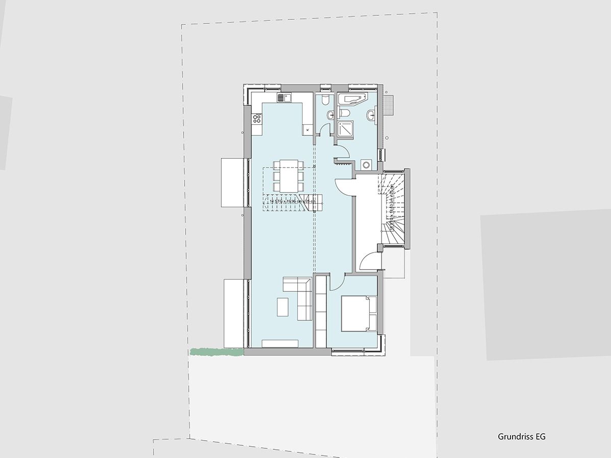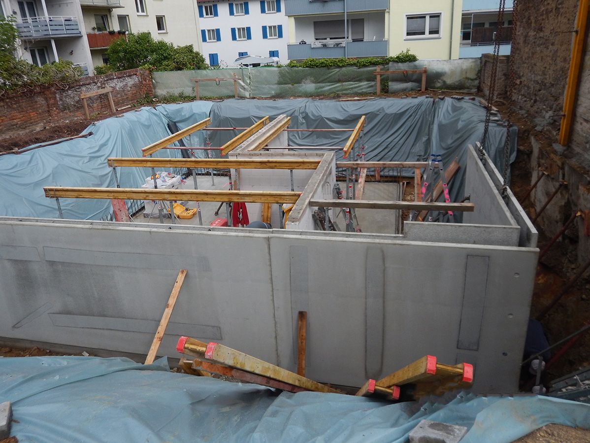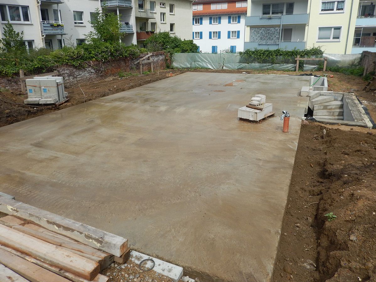 Das Dreifamilienhaus als Verdichtungsbau in einem Wohnviertel wird oberhalb des Kellers komplett in Holzbauweise errichtet. Das Gebäude hat einen ausgesprochen gutes Wohnklima und eine sehr gute Ökobilanz. Die drei verschieden großen Wohneinheiten sind jeweils individuell gestaltet. Das Gebäude fügt sich auf knappem Grundstück gut in die Umgebungsbebauung ein.